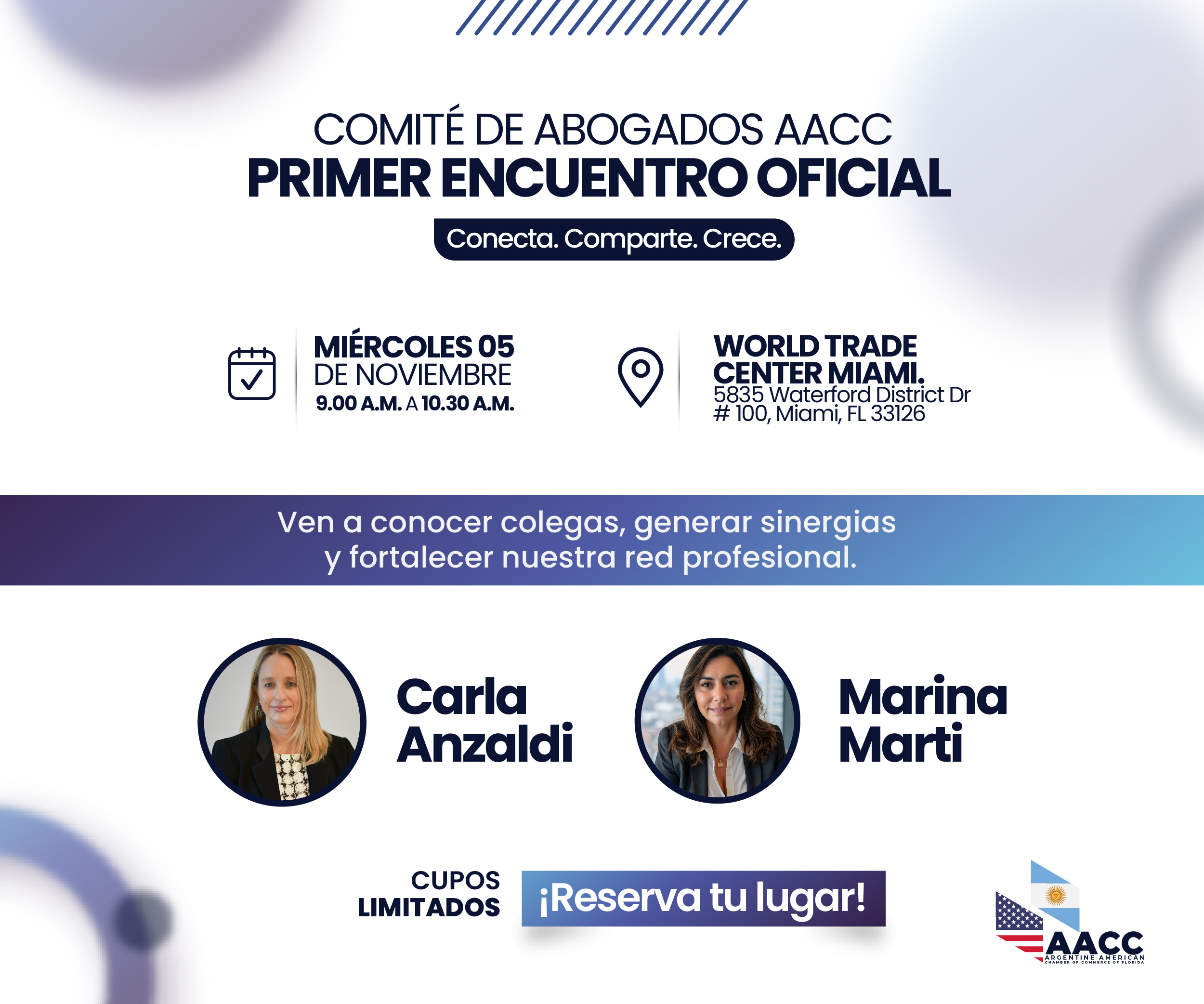 Invitamos a todos los abogados argentinos en la Florida a participar del primer encuentro oficial del Comité de Abogados de la Cámara de Comercio Argentino Americana de la Florida.