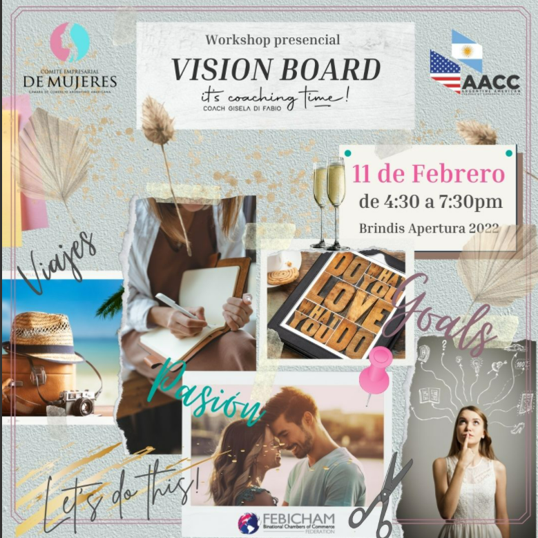 En este workshop presencial te enseñaremos como armar tu Vision Board o Mapa de los Sueños, el cual es una herramienta clave que sirve para plasmar visualmente esas metas.